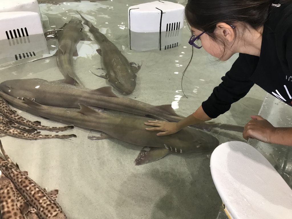 Puis j’ai aimé caresser les requins mais j’en avais déjà touché à Kobe ! Leur peau c’est comme une langue de chat ! Bisous !