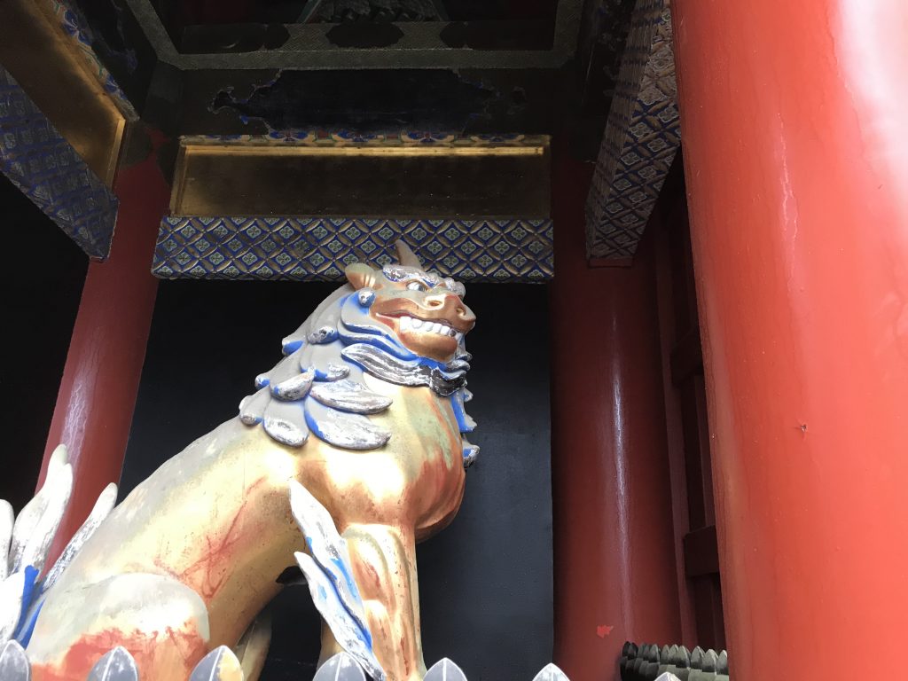 C’est un temple shintoiste, caractérisé par ses gardiens « A » et « N » qui sont un peu l’alpha et l’oméga grecs, symbole du « Tout », correspondant au symbole chrétien de la Création.