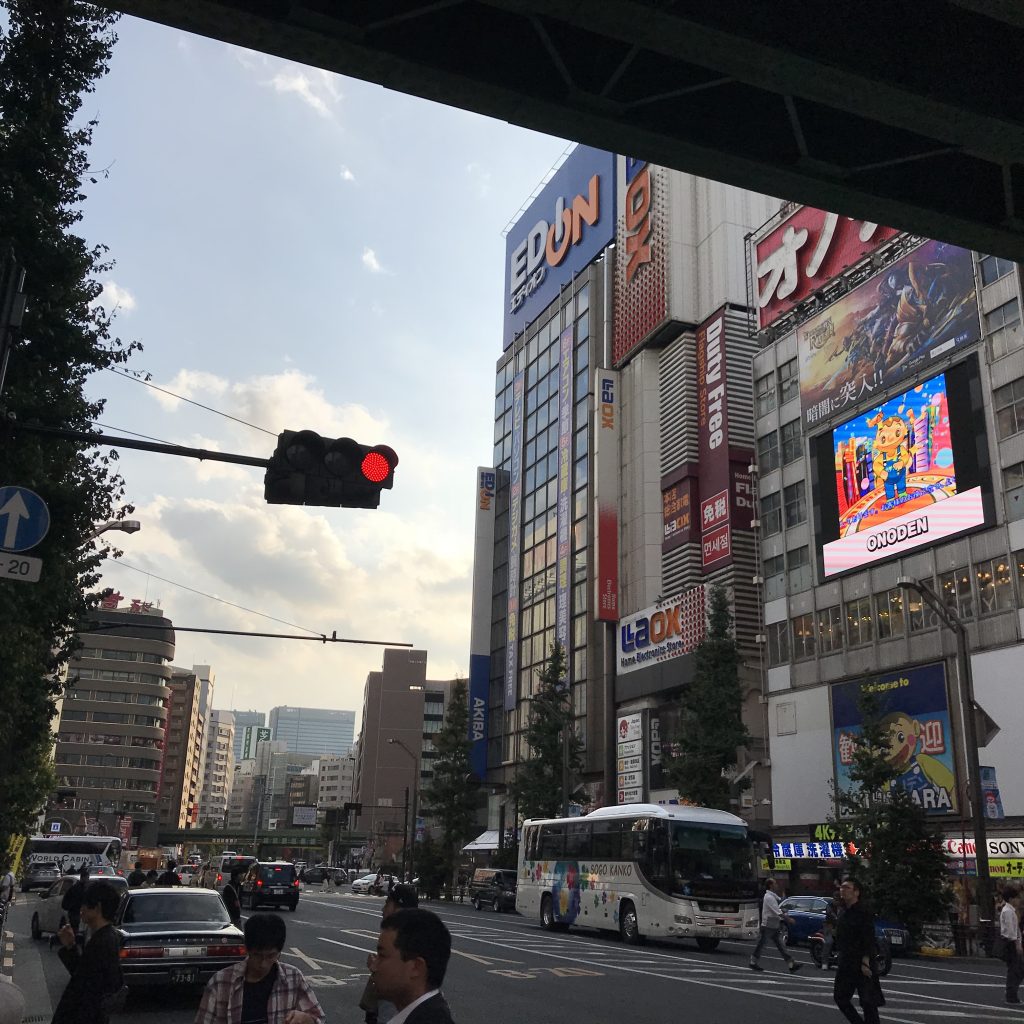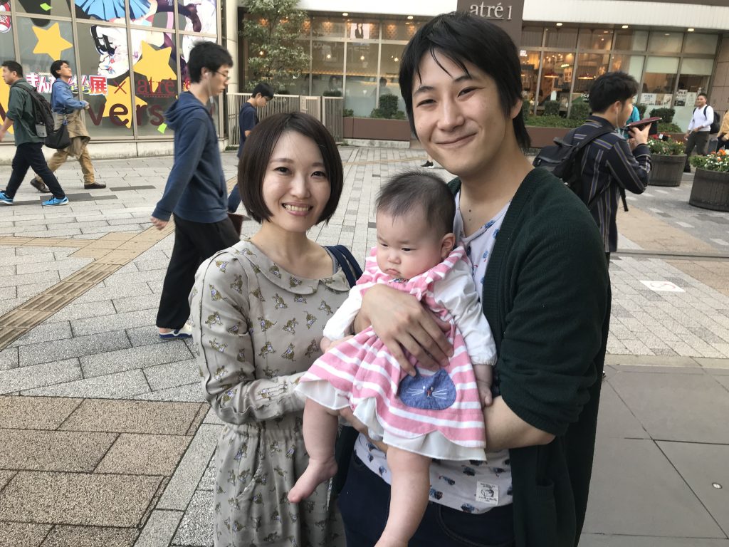 Nous sommes allés samedi matin à Akihabara, quartier assez proche de notre hôtel, pour commencer par rencontrer la cousine de Maman, qui s’est mariée récemment, mais à cause de l’éloignement, nous n’avions jamais vu son mari. Ils viennent d’avoir une petite fille.