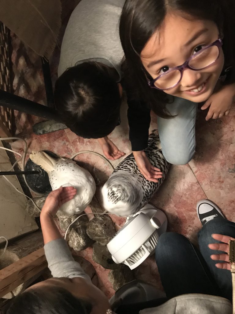 C’est chouette de pouvoir les voir de près et de les caresser !