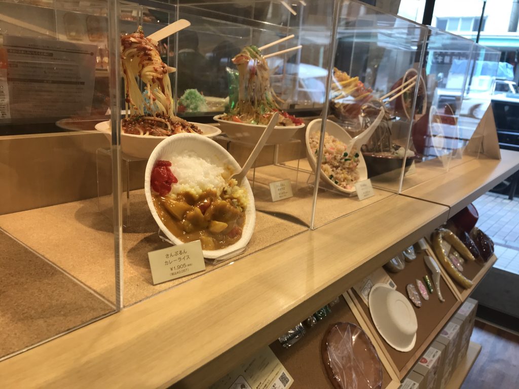 Devant les restaurants, il y a toujours une reproduction des plats en matière pastique. Ici un magasin spécialisé dans ce genre de produits :