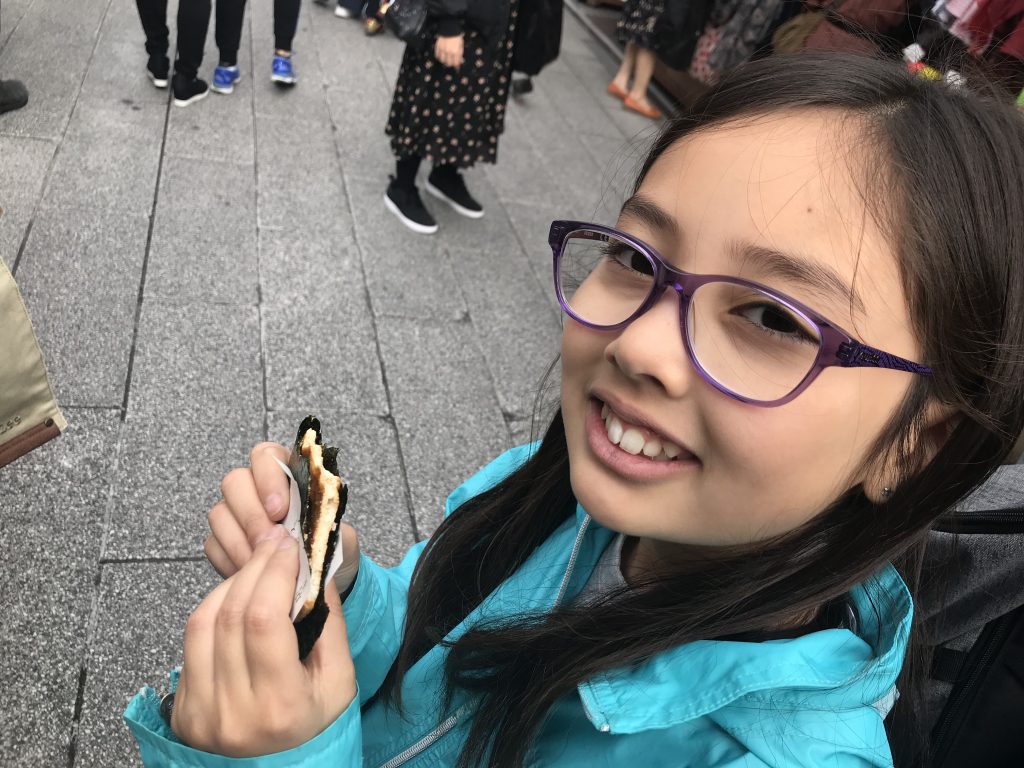 Apolline a choisi un senbei (gâteau sec entouré d’une feuille d’algue),