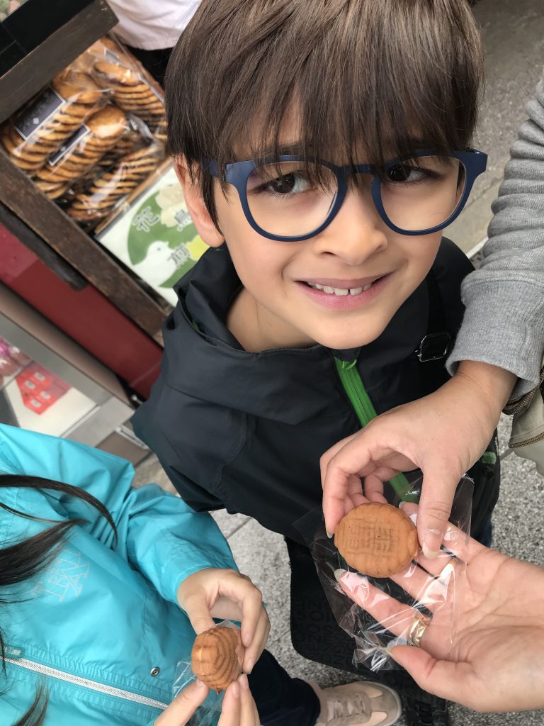 Edouard a préféré goûter un ningyouyaki, gâteau fourré à la pâte de haricot rouge.