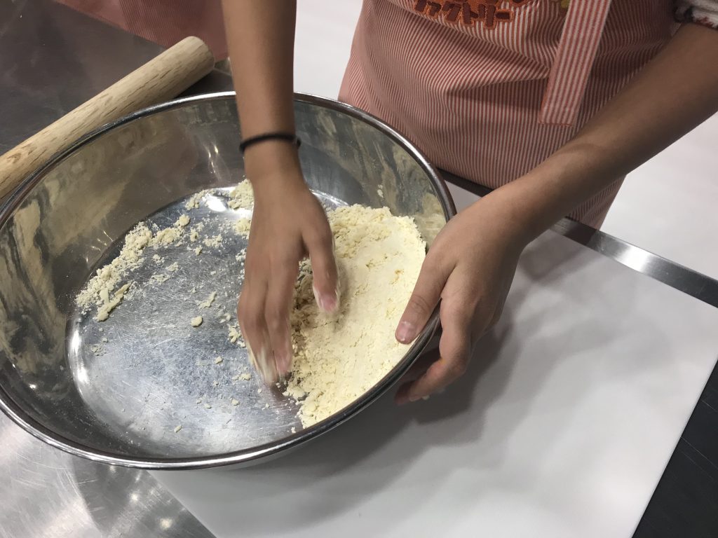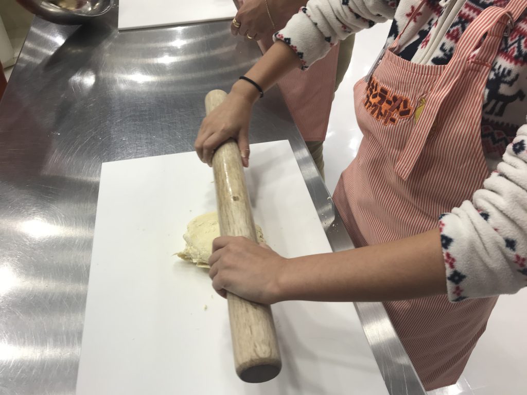 Ensuite une fois que le mélange est homogène, on l’aplatit au rouleau. C’est dur !