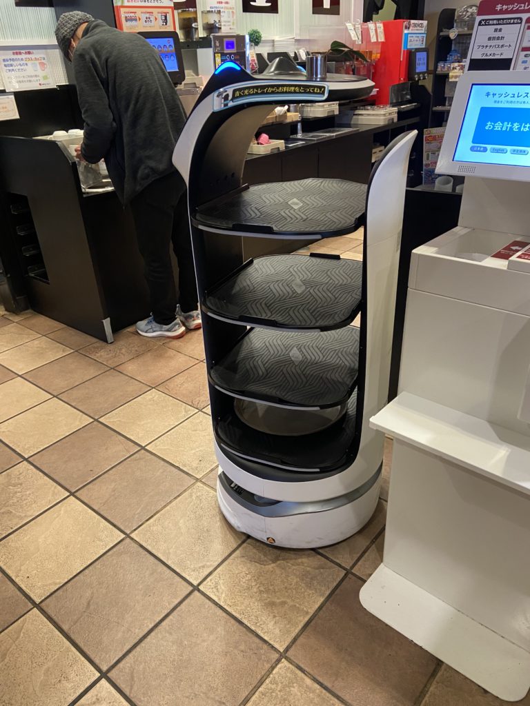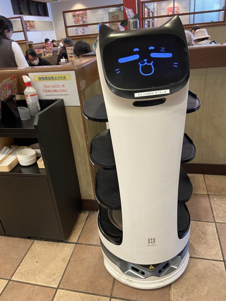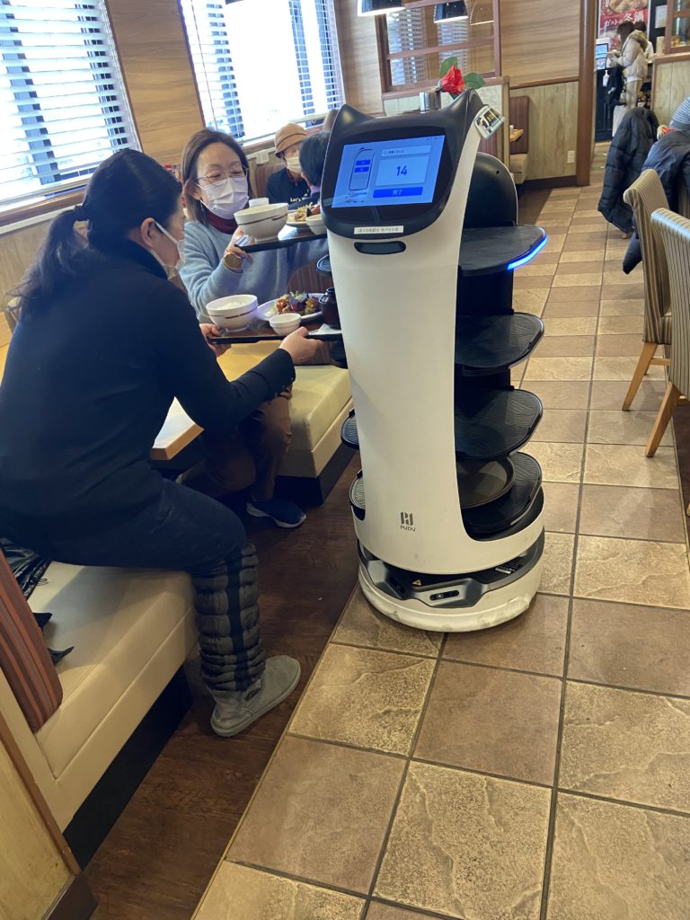 A midi, nous sommes allés manger dans un restaurant populaire qui a une particularité : ce sont des robots qui servent les clients !