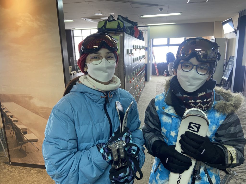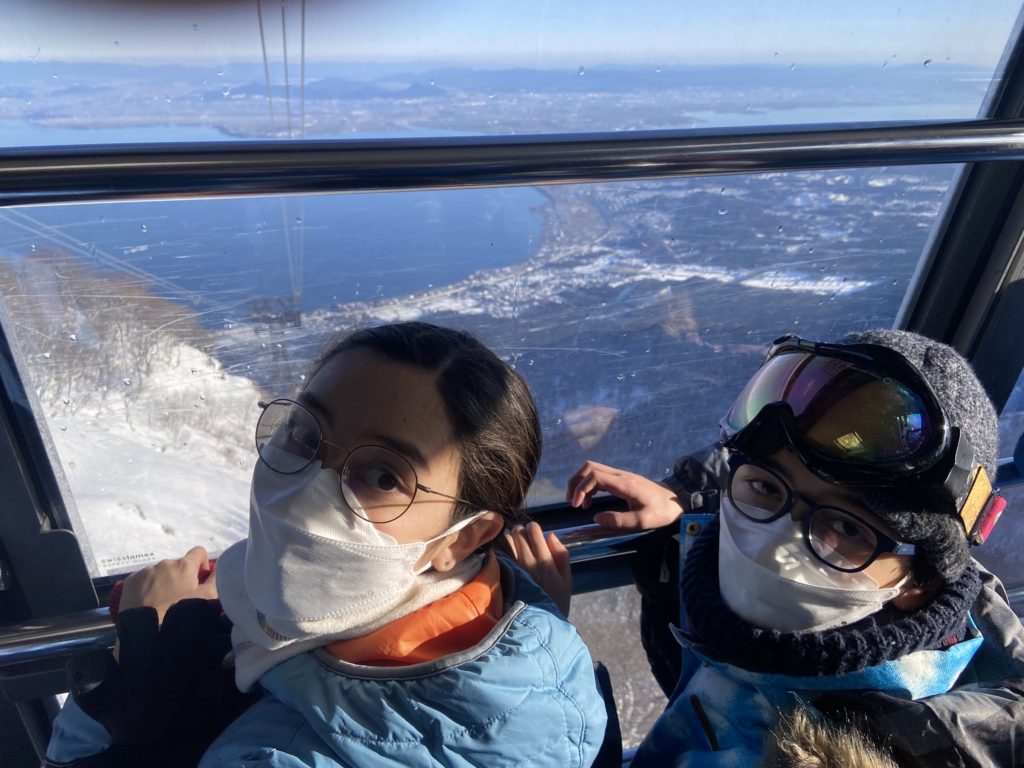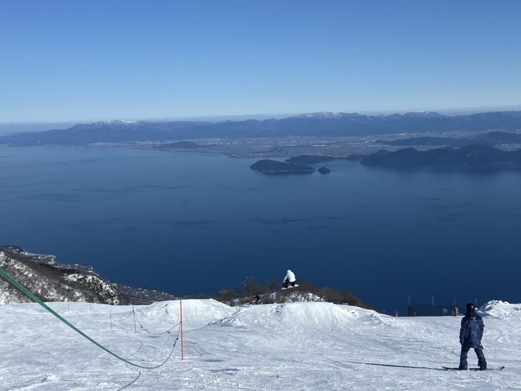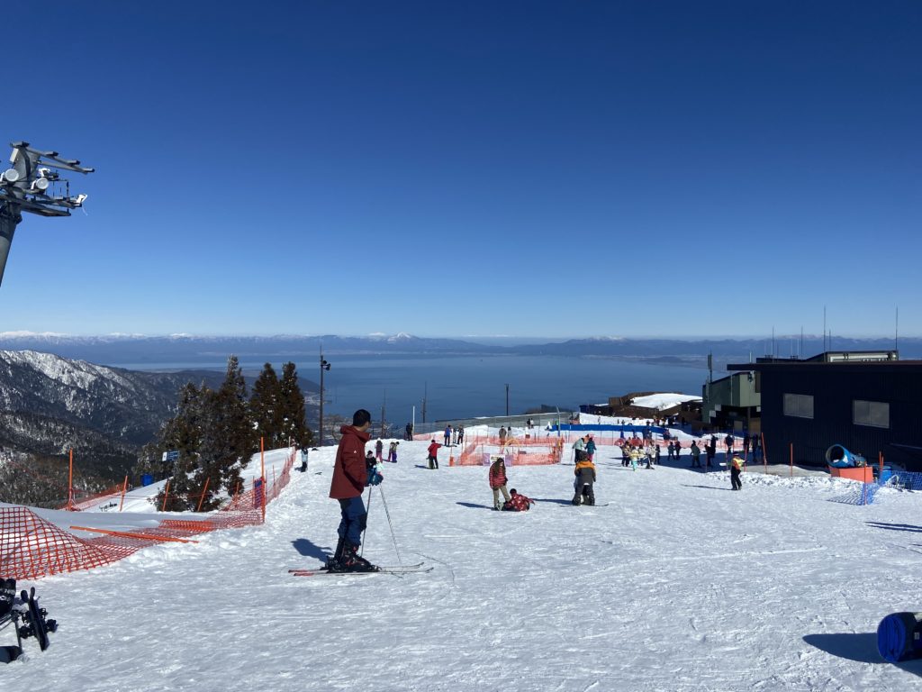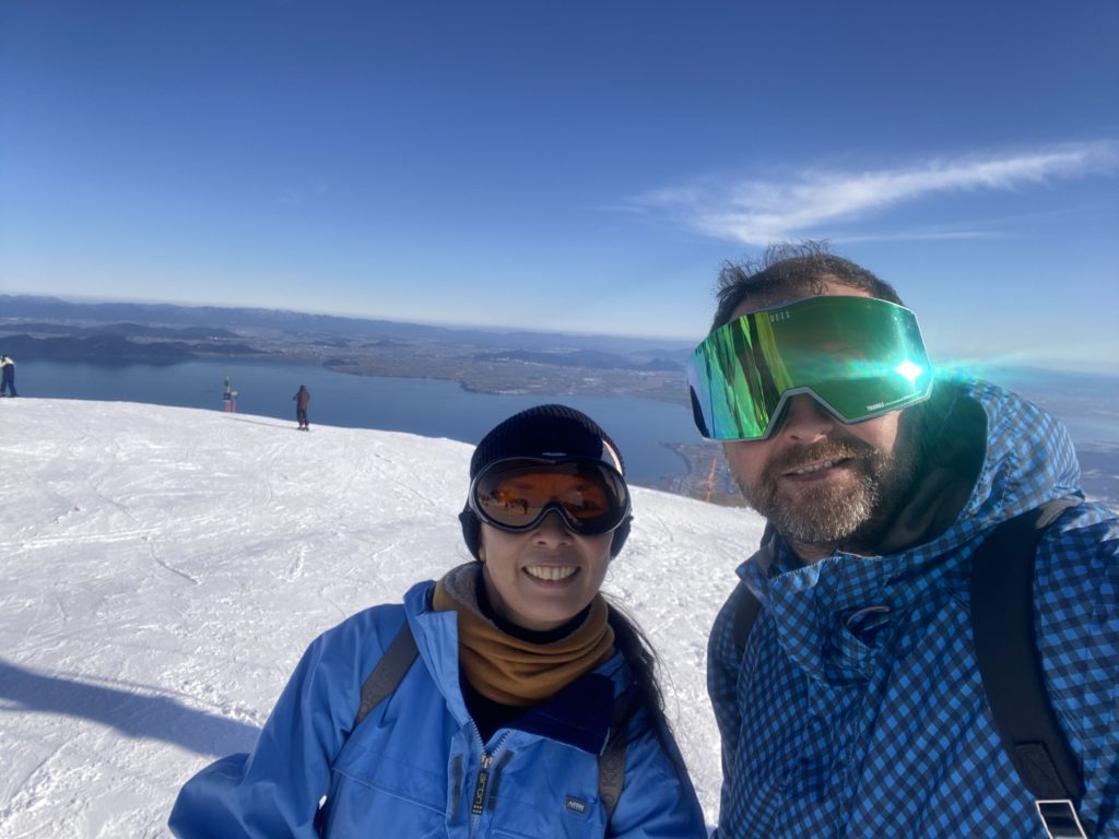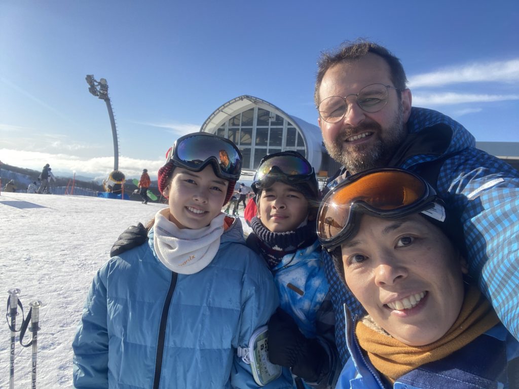 A 1h de train de la maison, au bord du lac Biwa, il y a une station de ski, et nous profitons d’une journée magnifique pour aller faire quelques glissades. Edouard est parti en classe de neige l’année dernière, pour Apolline c’est une première, et Papa et Maman n’étaient pas remontés sur des planches depuis 20 ans. Tous nos amis nous ont prêté des équipements, nous louerons le reste à la station.