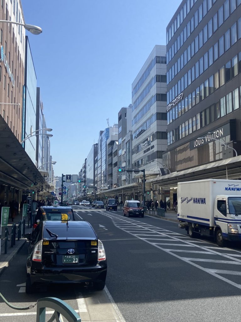 Cet après-midi, nous avons du temps pour rencontrer Hatsune à Kyoto, faire un peu de shopping, déambuler au gré de nos seules envies… être en vacances, en somme ! Nous avons rendez-vous à la gare de Karasuma, où il y a beaucoup de petits commerces traditionnels, et aussi des grands magasins.