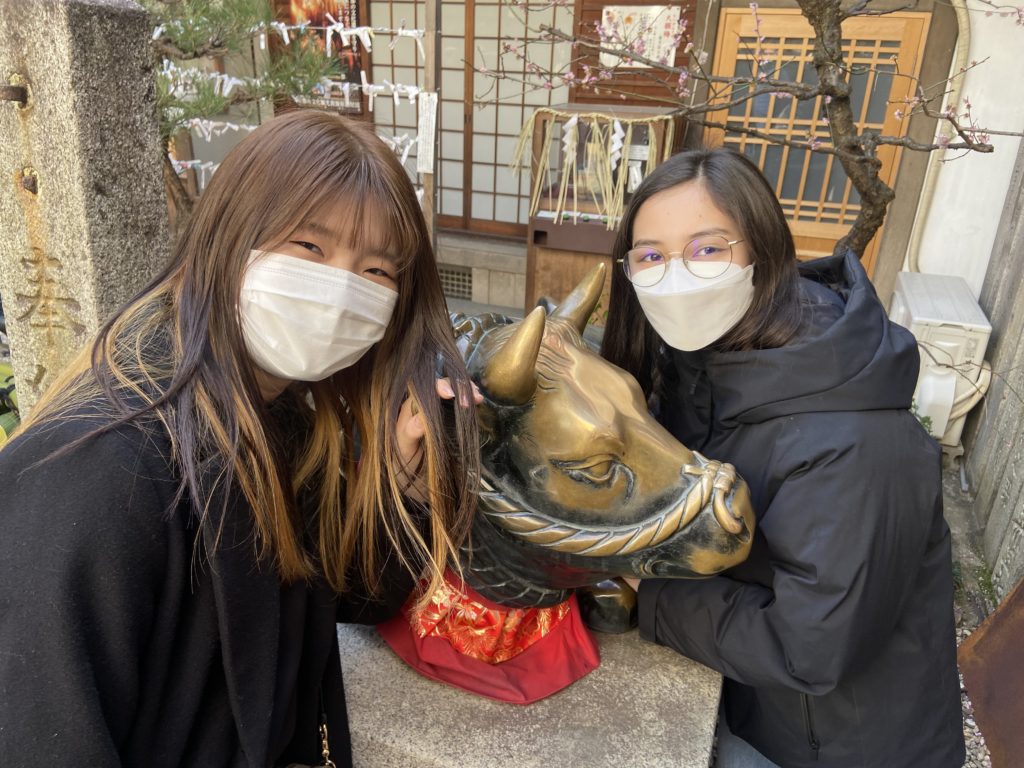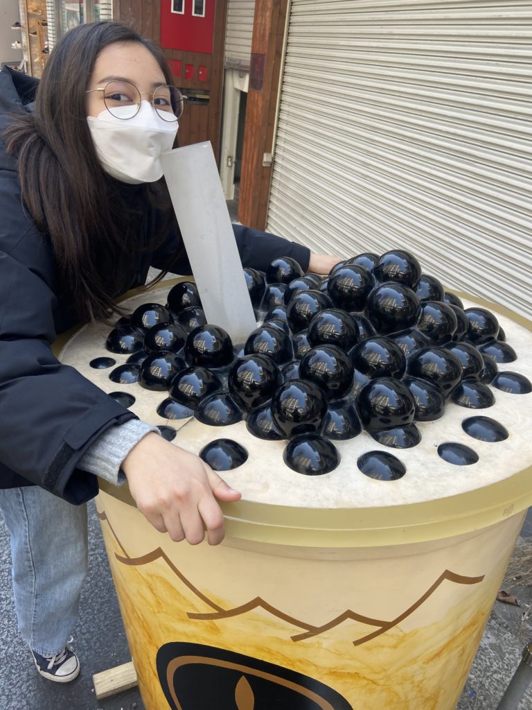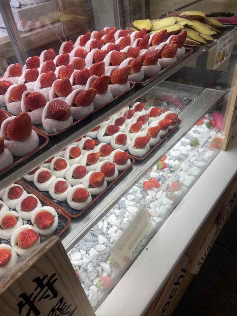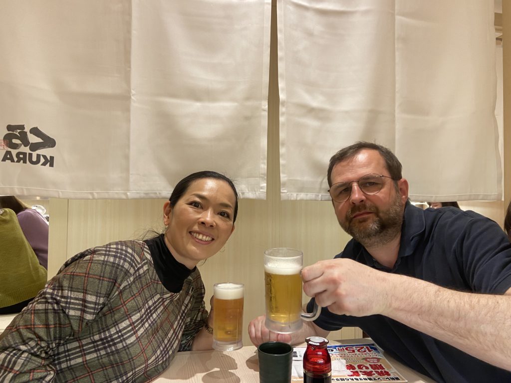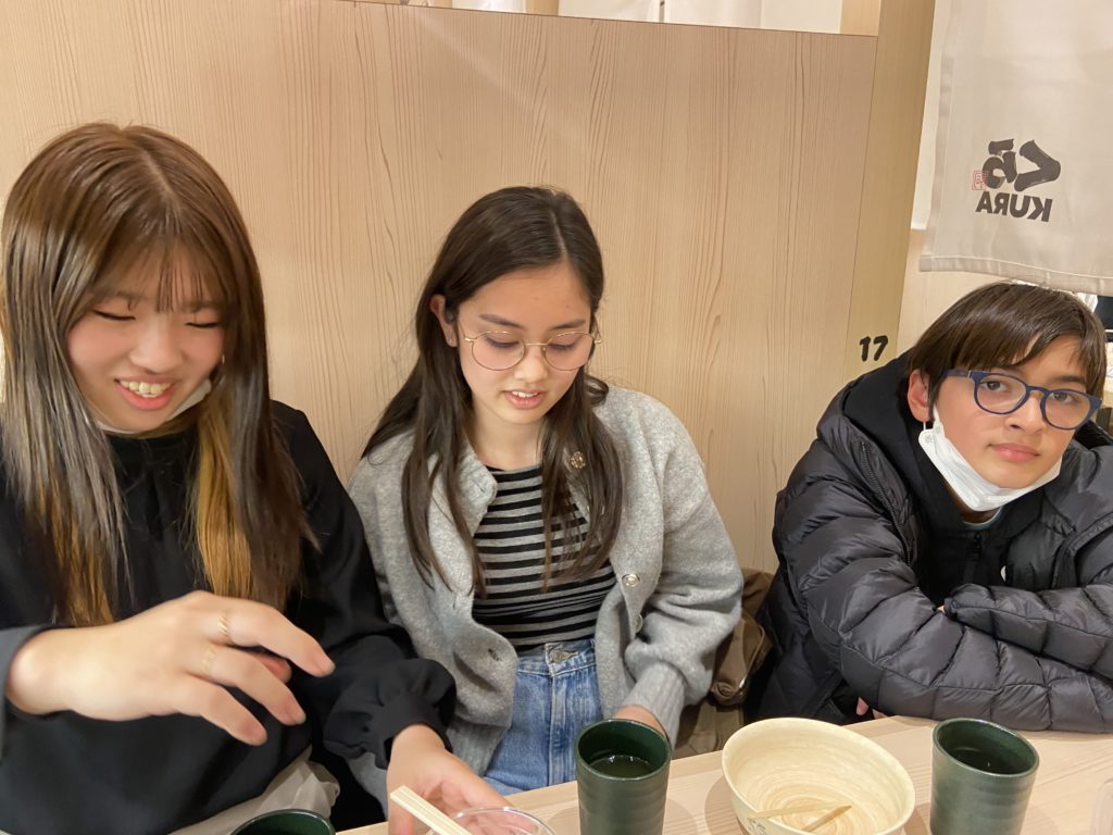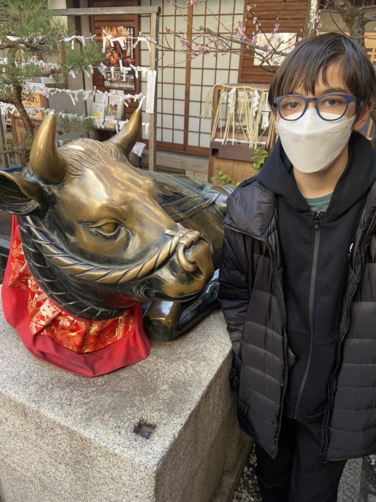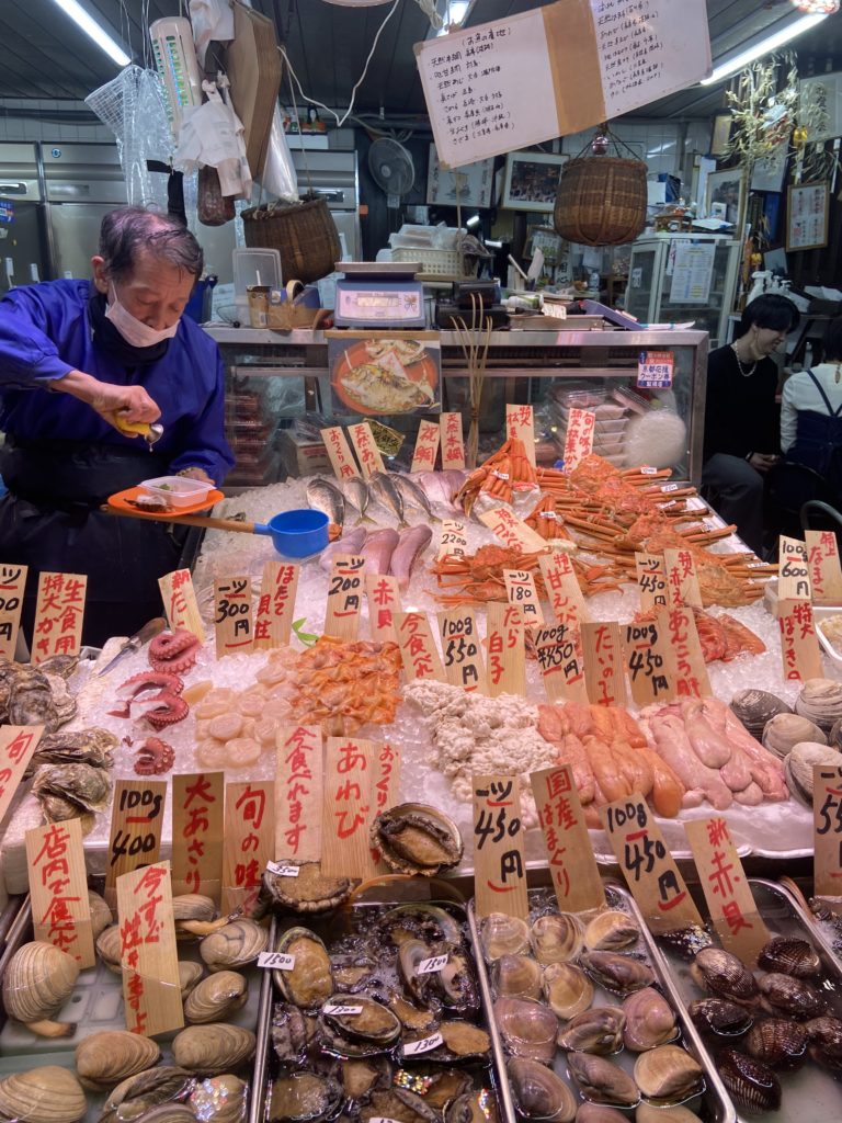 Un passage avec beaucoup de petites échoppesÉvidemment, des poissonneries partout !Des mochis au thé vert…Tirez la langue et faites « Aah » !Partout au Japon on trouve du Daikon, radis blanc très long, mais à Kyoto, et uniquement ici, il existe une variété ronde de ce radis…L’animal préféré d’Edouard…Derrière le petit temple, une arrière-cour très tranquille, c’est ça Kyoto…Apolline maîtrise parfaitement l’art de faire savoir ce qu’elle désire !Mais avant le tapioca, on va aller déguster quelques suchis chez Kura !Pour Édouard, ce sera une mangue en dessertApolline et Hatsune sont comme deux sœurs.Ici, l’ancien côtoie le moderneLe soleil se couche, il va bientôt falloir rentrer pour préparer notre dernière sortie demain…Un magasin de vieux reflex !Dans les magasins, un dispositif détecte les personnes et mesure leur température corporelle. On ne voit pas bien mais là, ma température est de 35.9°. Je suppose qu’au-dessus de 37, la bounding box serait rouge et une petite alarme préviendrait le vigile ?