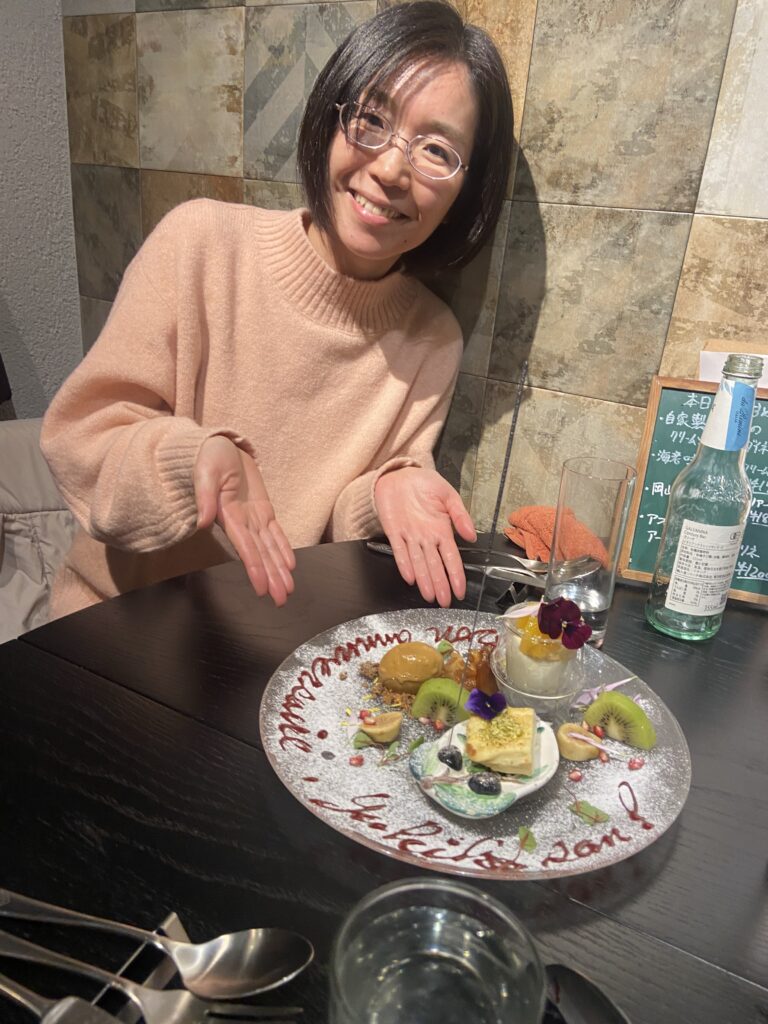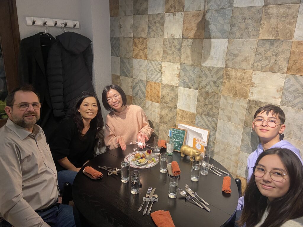 Yukiko était venue nous rendre visite en France, quelques années après notre installation dans la Sarthe. Ce soir, nous fêtons son anniversaire à Takatsuki, dans un restaurant… italien !
