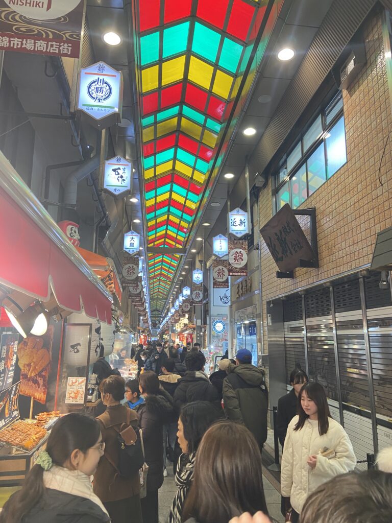 Nous nous faisions une joie d’aller à Kyoto, mais nous avons été déçus par l’ambiance. Nous pensions pouvoir déjeuner tranquillement dans une petite échoppe traditionnelle, mais cela a été impossible, à cause d’une véritable marée humaine de touristes, et une offre qui s’adapte à la demande : prolifération de marchandises de qualité douteuse « façon japonaise » (beignets de surimi à la place des fameux kani-no-tempura que nous apprécions tant) et prix en visible augmentation !