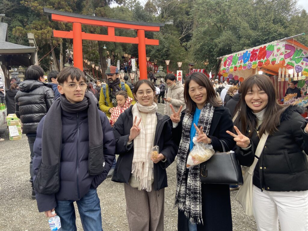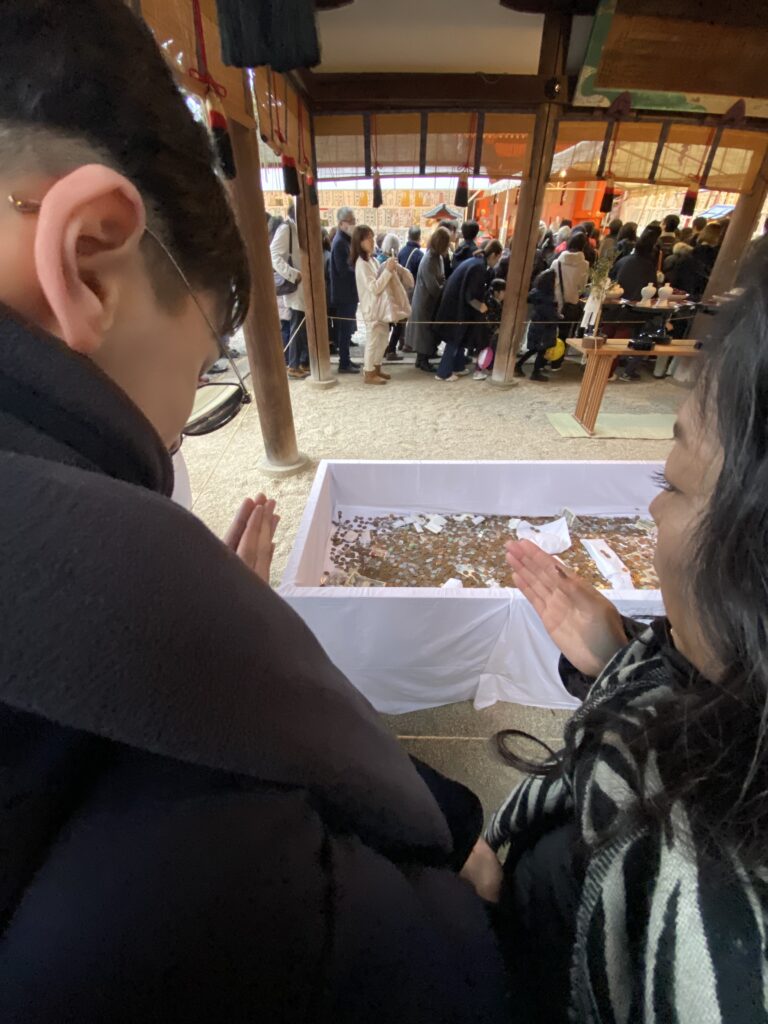 Pour ne pas gâcher la joie de nous retrouver, nous filons tout de suite en bus à Yoshoida-Jinja, quartier de l’université de Kyoto.