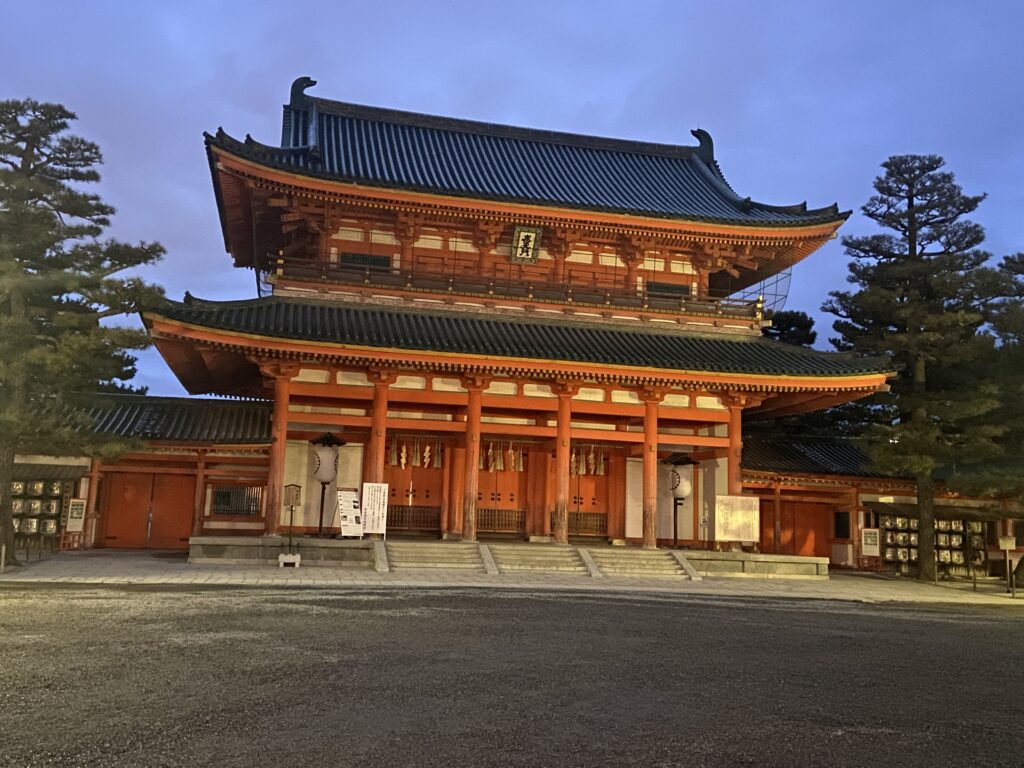Le parangon du temple shintoïste, à la nuit tombante.