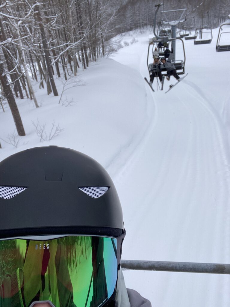 1. Trop bon! De la peuf partout! Je reconnais bien Massa en rider et les petits loups sur des skis rossignols!!! Il n’y a pas de marque japonaise? Et le plus beau bien entendu celui que l’on surnomme PAPA, caché sous son masque miroir. Très bonne marinade dans le onsen. Profitez bien et affûtez votre technique on se retrouve dans les Alpes l’année prochaine. Les 5B