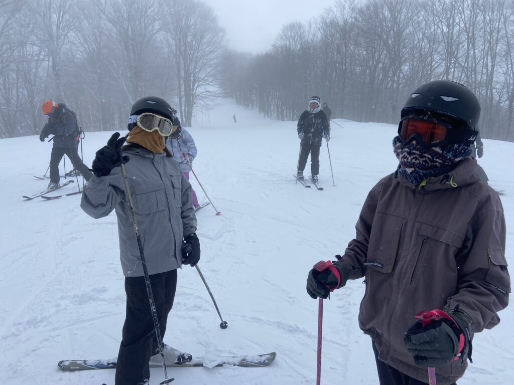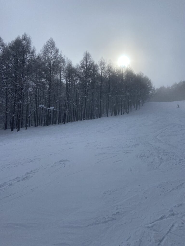 Pas besoin de canons à neige pour les amateurs de glisse, et la journée commence par une belle chute (de neige ;-)). Aurons-nous du beau temps pendant notre court séjour ? Pas grave, pourvu que l’on puisse dévaler les pentes !