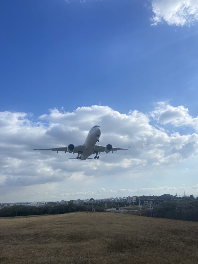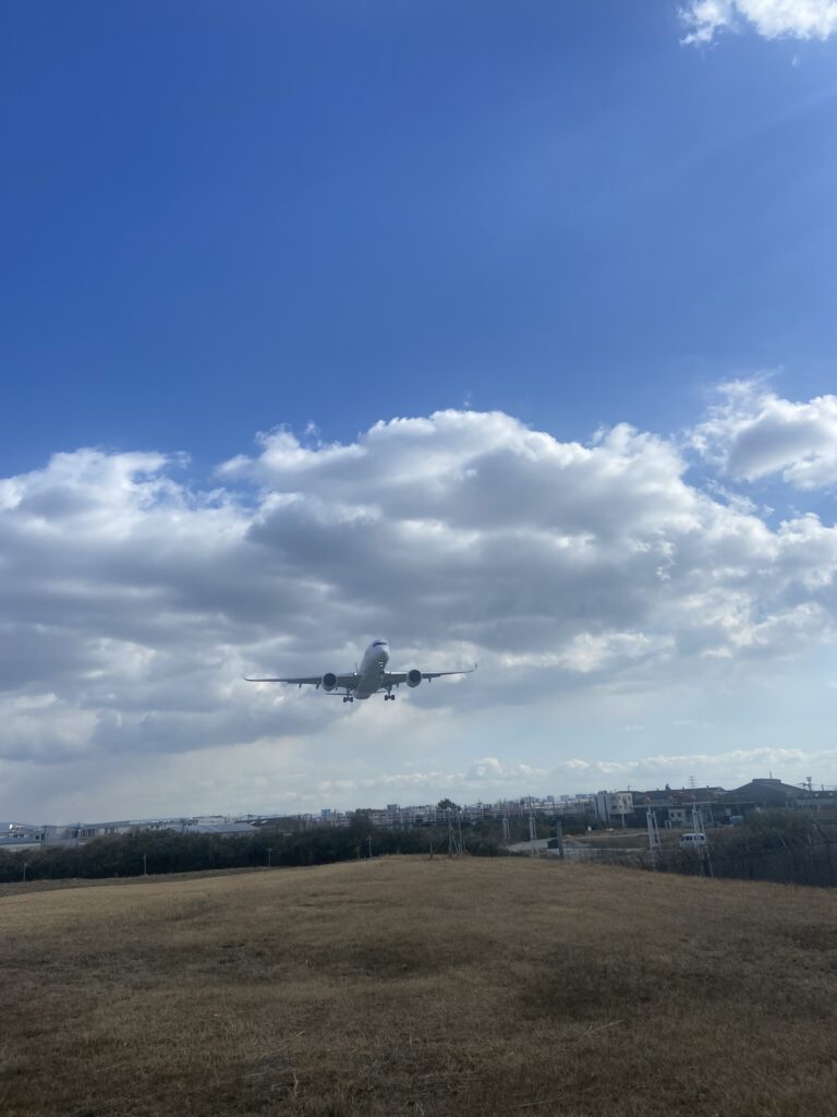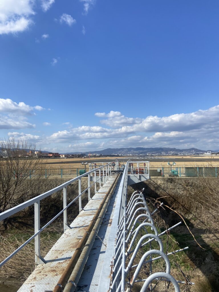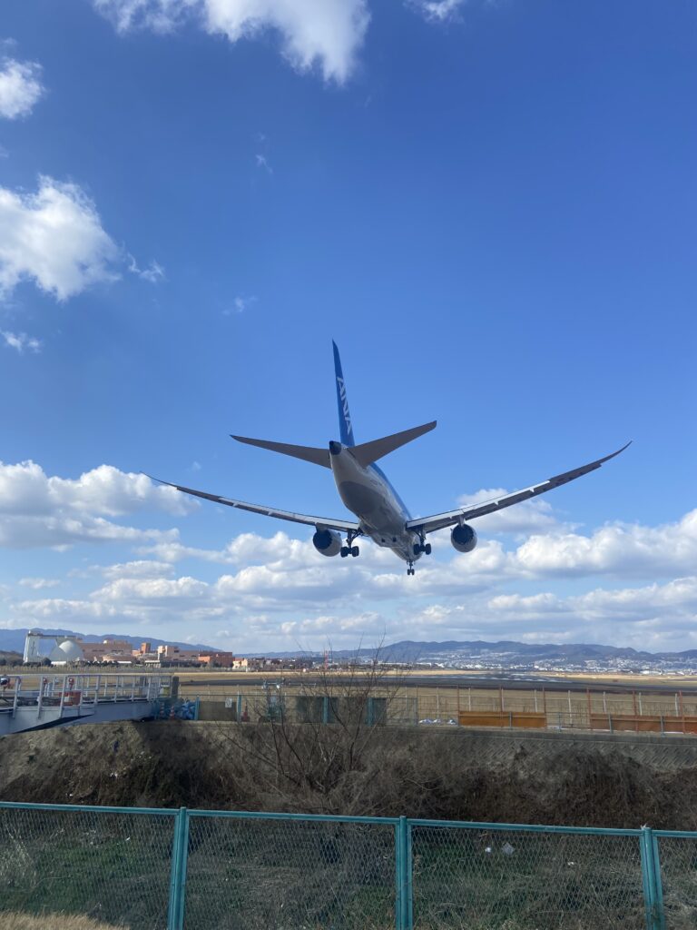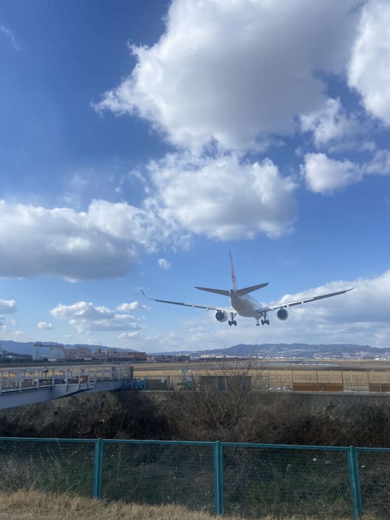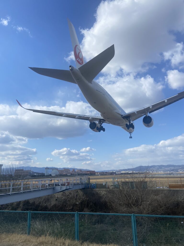 En visitant le nord d’Osaka, nous nous arrêtons aux bord des pistes de l’aéroport Itami, plutôt réservé aux vols intérieurs. Quelques gros avions passent juste au-dessus de nos têtes !