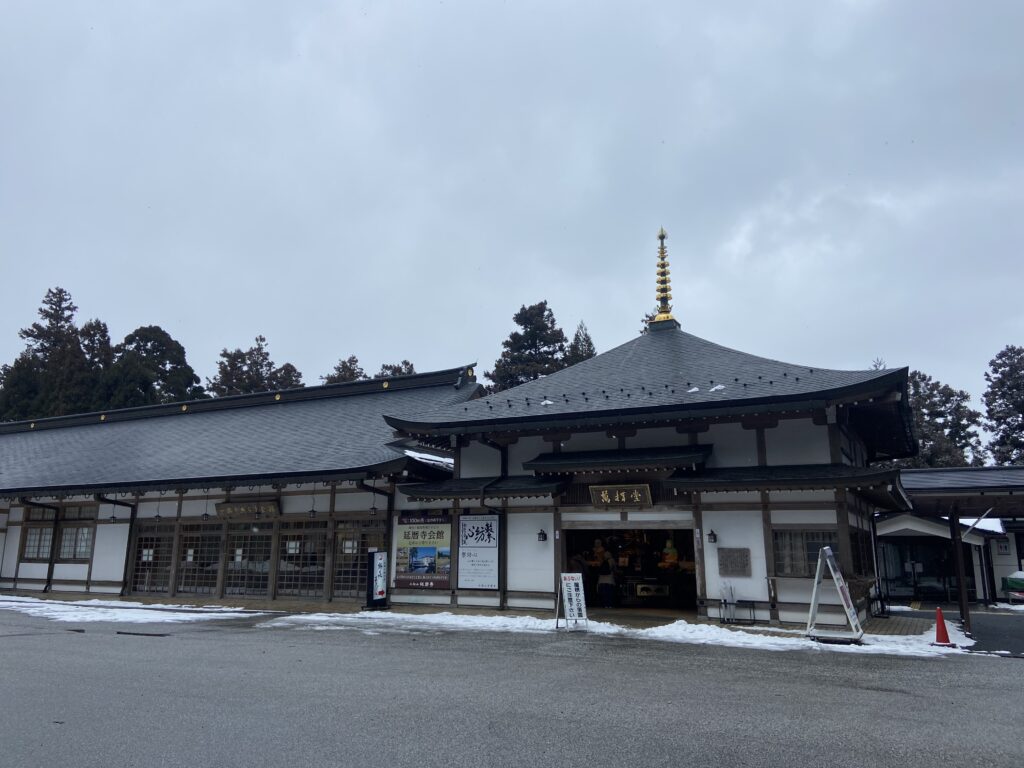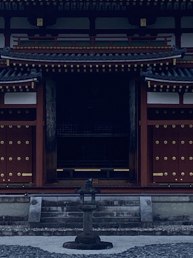 On ne peut donc pas prendre de photos ici, sauf ce qui concerne la rénovation, qui est une sorte de visite dans la visite. De toute façon, à l’intérieur du sanctuaire, tout est très sombre. Il y a plusieurs lieux de prière, dont l’un dédié à Amida et un autre à Bouddha, avec à ses pieds, une flamme qui brûle depuis plus de 1000 ans sans interruption !