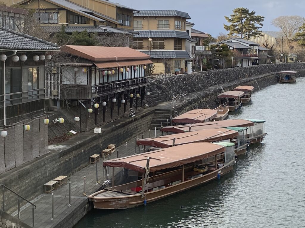 Un peu plus loin, au bord de la rivière Uji, nous traversons un site de pêche au Cormoran, pratiquée ici pour maintenir la tradition. Les oiseaux attrapent les poissons la nuit – ‘on éclaire la rivière pour les attirer – puis une fois leur gosier rempli, on leur fait recracher leur proie…